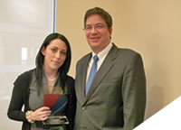 El gerente de Zona Banca Empresarial, Mauricio Aguilar Díaz, y la especialista de producto Centro de Negocios Empresariales de Paloquemao, Sandra Milena Salcedo, recibieron el reconocimiento del presidente del Banco, Santiago Rojas Arroyo, quien resaltó el dinamismo del Banco Av Villas, como aliado estratégico, en la colocación de recursos de Bancóldex a las Pymes.