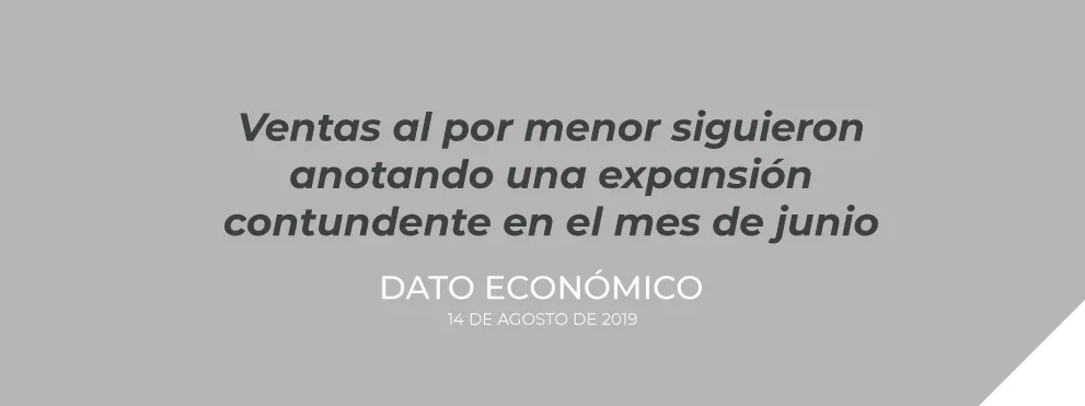Excluyendo las ventas de vehículos y combustibles, las ventas minoristas anotaron un crecimiento significativo de 8,9% a/a, lo que sigue reflejando la solidez que ha venido mostrando el sector en lo que va del año. Finalmente, en el periodo enero-junio, el comercio minorista registra una expansión real de 5,7%, lo cual es un buen augurio para la lectura del sector dentro del PIB en la primera mitad del año.